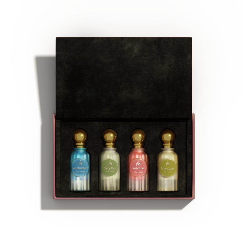 طقم مميز يحتوي على أربع عطور:1- عطر مسك Fancy Look2- عطر مسك Night Love3- عطر مسك Shiny Day4- عطر مسك Sweet Dreamsالسعر شامل الضريبة